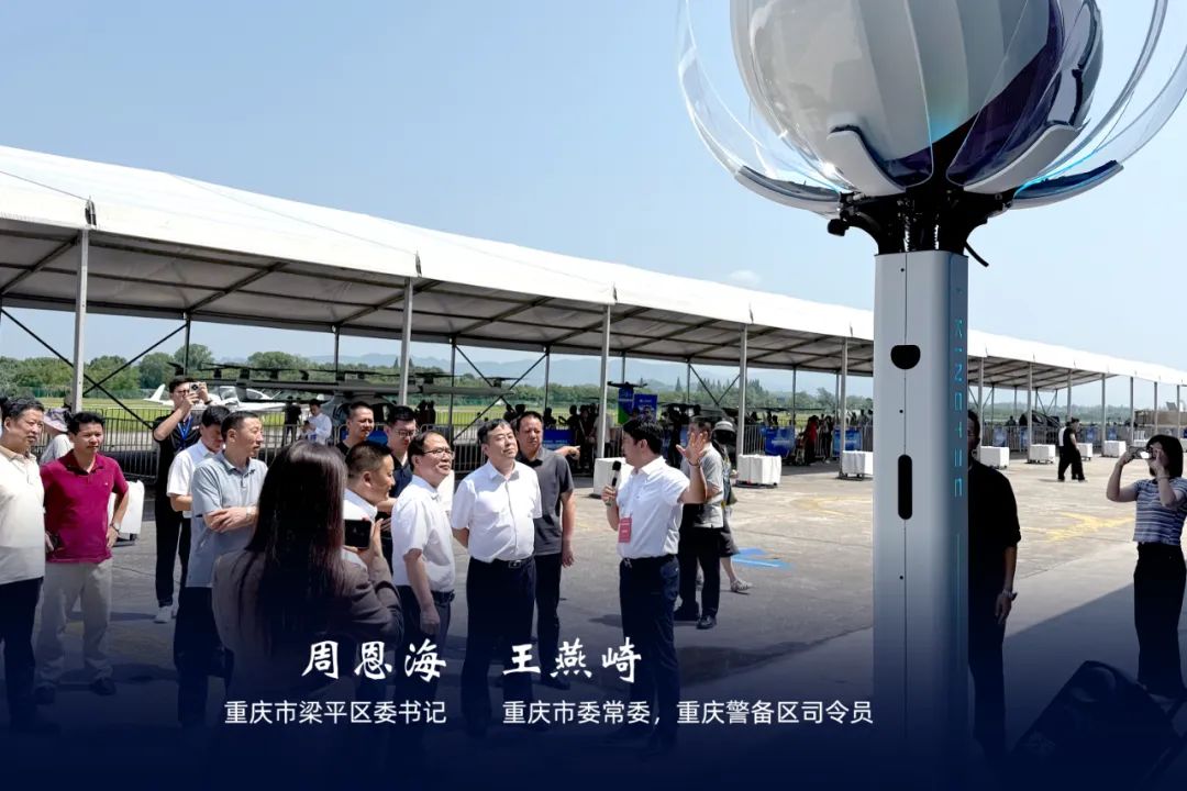 博览会期间,中国工程院院士刘大响,中国民用航空局原副局长、中国航空学会低空经济首席专家董志毅,中国信息协会低空经济分会副会长兼秘书长王惠铮,民航局空管局技术中心原副主任伊群等行业专家,以及重庆市委常委、重庆警备区司令员王燕崎,重庆警备区少将副司令员陈澄,重庆市梁平区委书记周恩海,重庆市梁平区委副书记王永胜等领导嘉宾莅临展位交流指导,观摩实飞演示,给予了高度认可和赞赏。