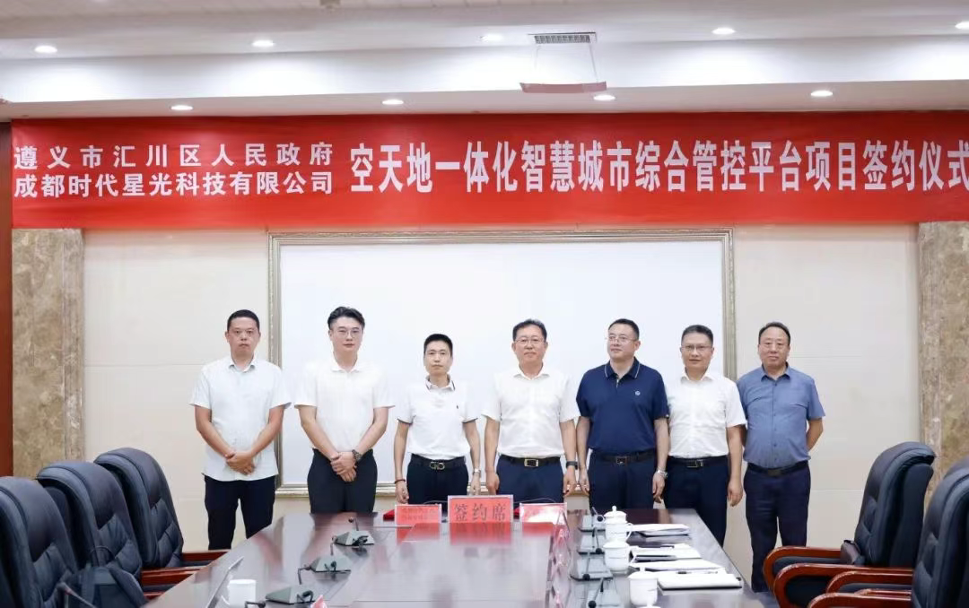 7月21日,成都时代星光科技有限公司与遵义市汇川区人民政府举行空天地一体化智慧城市综合管控平台项目签约仪式。遵义国家经济技术开发区党工委书记、管委会主任、汇川区委书记徐俊峰,成都时代星光科技有限公司董事长彭彦平出席签约仪式并分别讲话。汇川区委常委、区委办主任冯泽豪,区委常委、常务副区长黄军,遵义国家经济技术开发区管委会副主任、汇川区政府党组成员谢庆松参加。