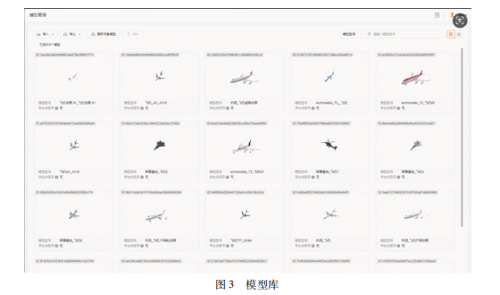 (2)数字孪生场景编辑模块。基于先进的图形渲染和三维建模技术,建立丰富的模型库和素材库,同时支持自定义模型,可根据需要选择并导入各类三维场景及模型,通过拖拽、放置、编辑等方式快速创建和编辑数字孪生场景元素,支持孪生体管理,实现相对复杂的业务场景通过自由组合的方式搭建相对复杂的业务场景,具备数字孪生基础引擎功能,实现三维视频融合、数据和三维场景可视化展示,支持多种图层模板, 以满足各种不同业务需求。模型库如图3所示。