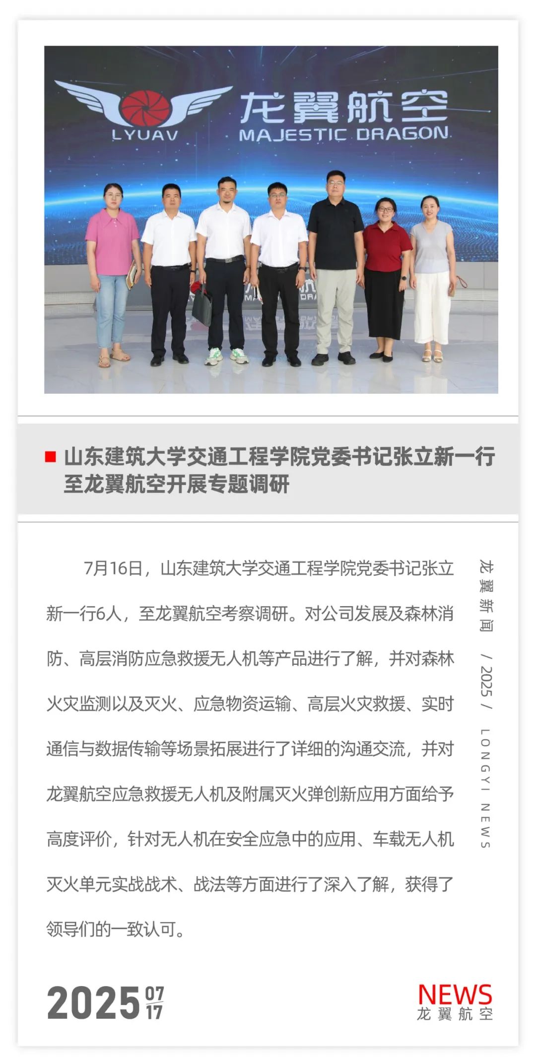 关于山东龙翼航空科技有限公司进入企业商铺山东龙翼航空科技有限公司位于济宁高新区接庄街道办事处远兴路3号,其中公司主要经营范围是:无人航空器系统开发、销售;自动化设备、机电设备系统集成与销售;电子产品的开发、销售;碳纤维制品的设计、销售;货物及技术的进出口业务;航空技术、航空器材的研发;航拍服务。