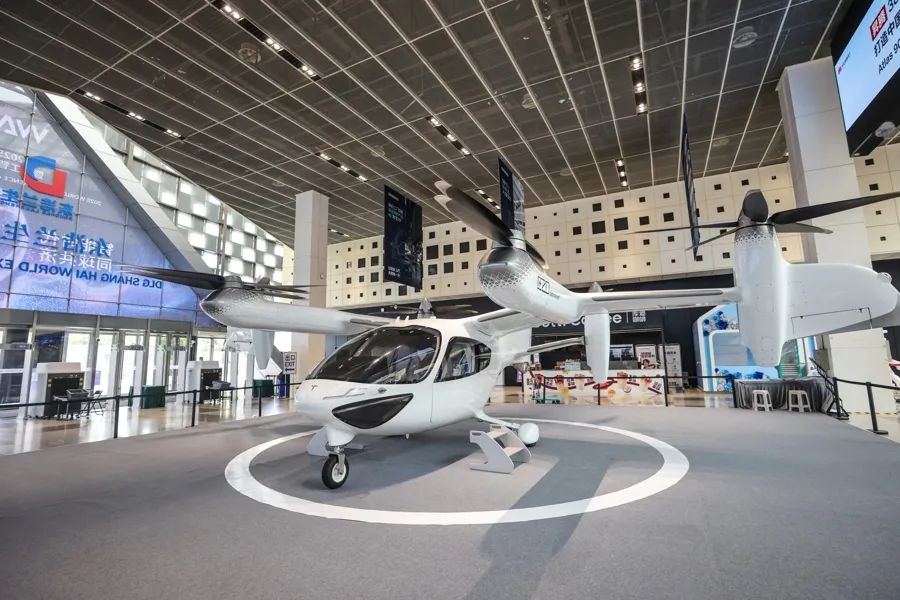 由上海时的科技有限公司自主研发的E20 eVTOL是代号为“E20”的倾转旋翼国产5座载人电动飞机亮相展览现场。