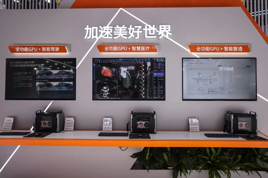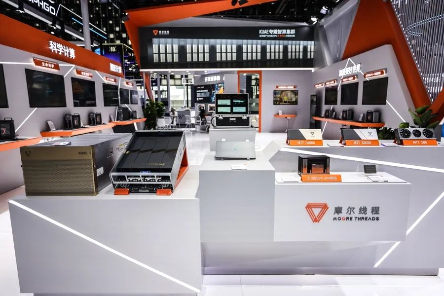 摩尔线程以全功能GPU为核心构建的"云边端"全栈AI产品和解决方案亮相WAIC展览,展示以国产全功能GPU为底座的通用加速计算平台、夸娥智算集群方案及各行业应用方案。