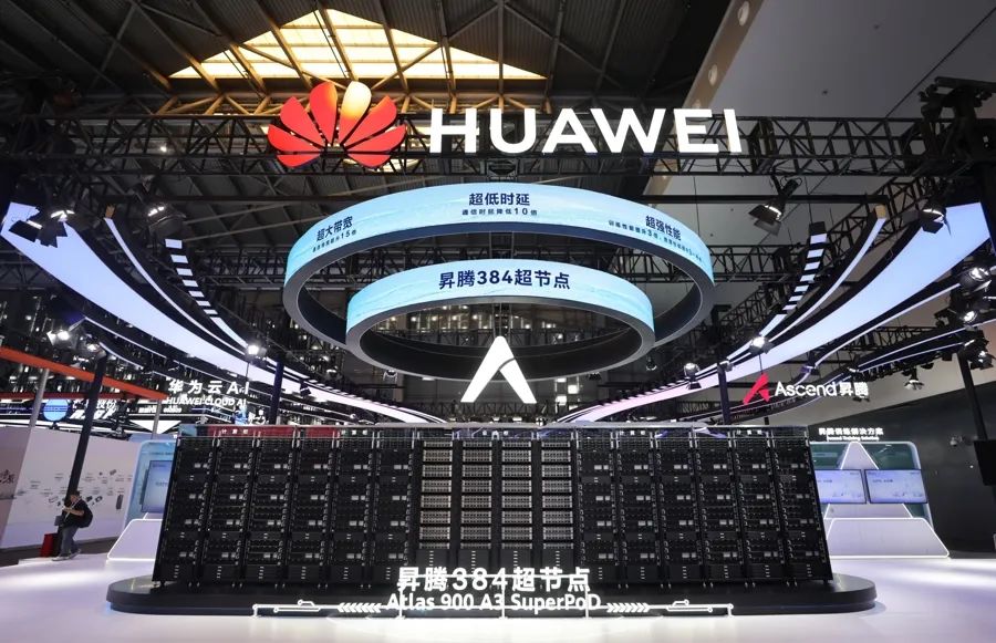 华为昇腾超节点技术突破384卡高速互联,通信带宽提升15倍,使千亿级模型性能提升2.5倍以上。