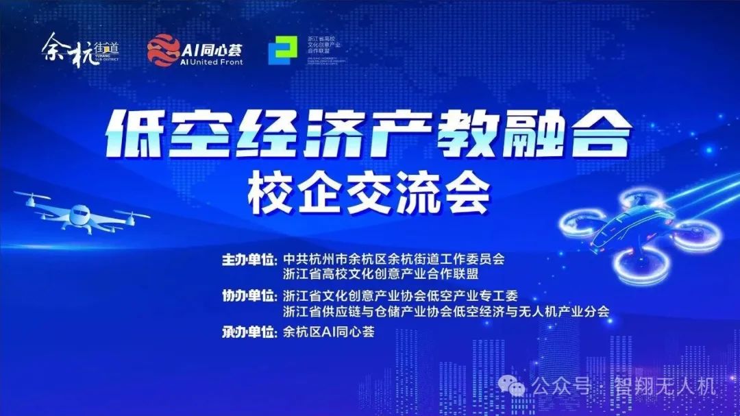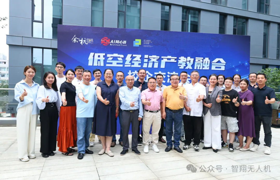 2025年8月1日下午,由中共杭州市余杭区余杭街道工作委员会、浙江省高校文化创意产业合作联盟主办,浙江省文化创意产业协会低空产业专工委、浙江省供应链与仓储产业协会低空经济与无人机产业分会共同协办,余杭区AI同心荟承办的“低空经济校企合作主题研讨会”在杭州中国人工智能小镇顺利召开。本次研讨会大咖云集,汇聚了行业协会领导、高校代表、企业负责人及行业专家,智翔航空与大家共同探讨低空经济领域校企合作的创新模式与发展路径。