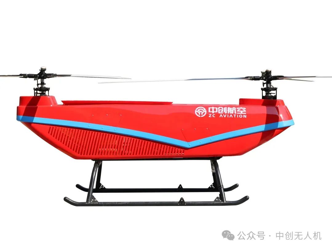 这是中创航空历时7年研发、测试推出的一款双旋翼无人直升机。它采用纵列式双旋翼结构,具有大载荷、长航时、高可靠的特点。飞机自重 340Kg,最大起飞重量可达650公斤,有效载荷高达260公斤,最大飞行高度为海拔 6500m。
