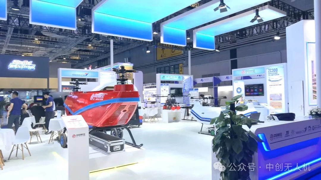 中创航空的展位设计大气简约,吸引了众多行业专家、企业代表及专业观众驻足参观。展位现场通过产品展示、动态模拟演示等多种方式,全方位呈现了公司的明星产品纵列式双旋翼无人直升机ZC500、ZC300,成为展会现场的焦点之一。