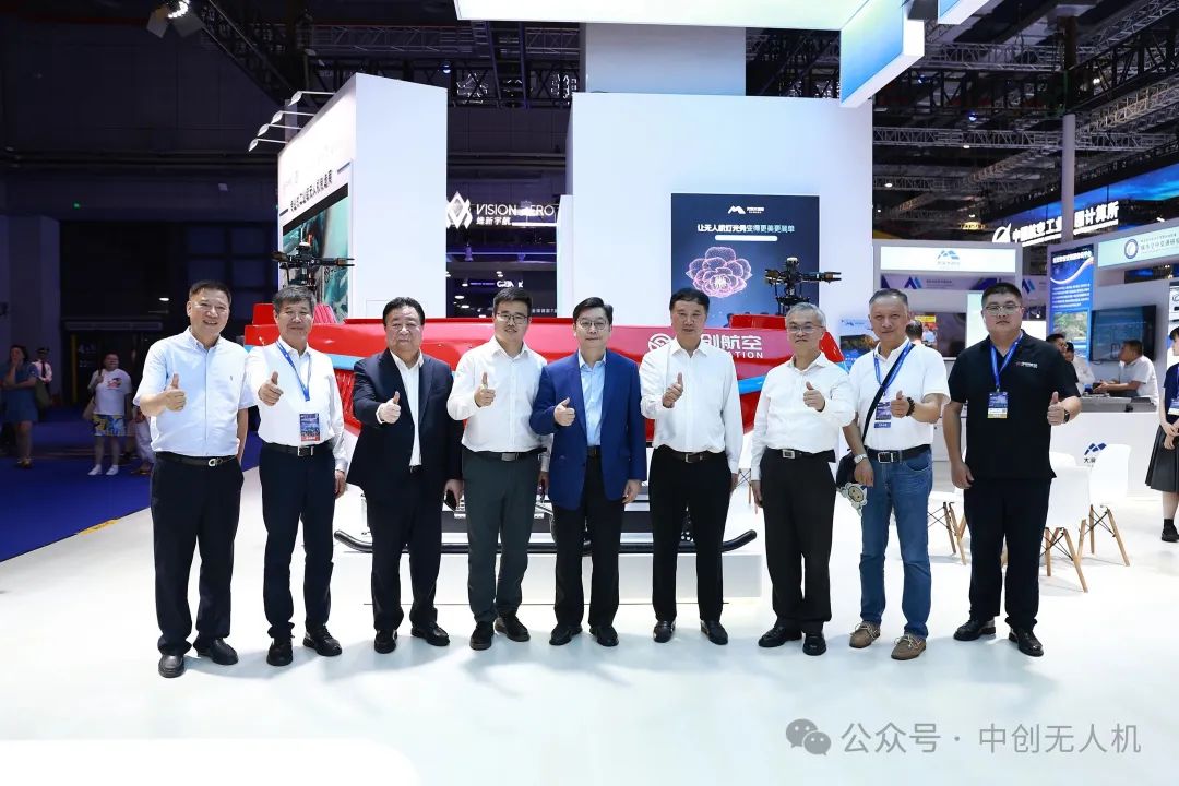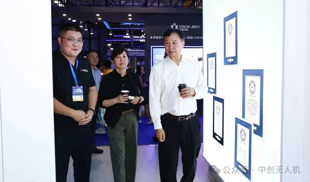 在展会期间,中创航空还迎来了重要领导和嘉宾的到访。上海现代服务业联合会会长孙建平、联合会副会长简大年、联合会副会长暨低空专委会主任朱州龙等相关领导莅临展位参观指导。