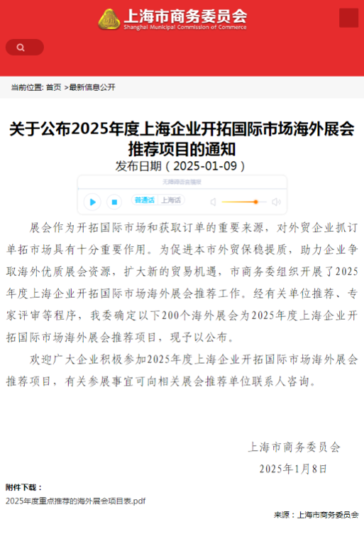 入选上海市"商务高质量发展专项资金"支持项目,享受高额补贴。