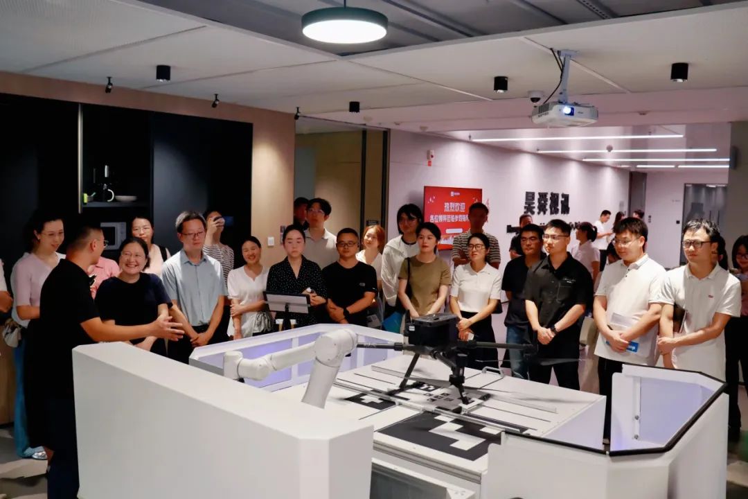 在昊舜视讯销售经理王路的陪同下,考察团深入企业核心区域。在展示中心,现场演示无人机机场的自动换电操作,展示其保障作业连续性及适应恶劣环境的关键能力。随后,王路通过大屏远程操控,呈现昊舜视讯“全域低空巡检平台2.0(HaoFly Plus Ver2.0)”的实际运行:无人机按预设航线自主起飞、执行巡检任务并实时回传数据。重点展示该平台在远程控制、智能任务规划与高效数据处理方面的强大功能。