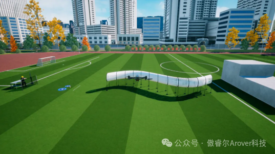 在航拍侦察方面,系统严格按照第一届全国消防行业职业技能大赛消防通信员竞赛项目技术细则搭建训练场景,支持无人机穿越障碍网、龙门障碍飞行以及废墟搜索飞行,实现危险品搜寻、热源定位、无人机全景图采集等全过程仿真。