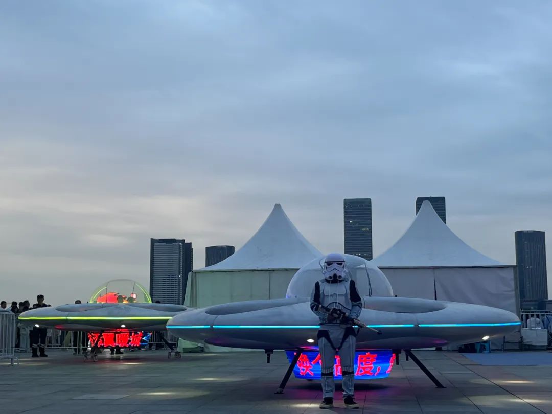 智航飞碟eVTOL、无人机编队、空中卡丁车和轻型运动类飞机轮番上演,科技感拉满!智航飞碟让科幻走进现实,重新定义了未来低空游览的想象空间,引得现场尖叫连连;无人机编队组合成各种图案,上演了一场来自天空的浪漫;空中卡丁车和轻型运动飞机在天空留下优美的弧线,给未来低空出行上演了现实样板。