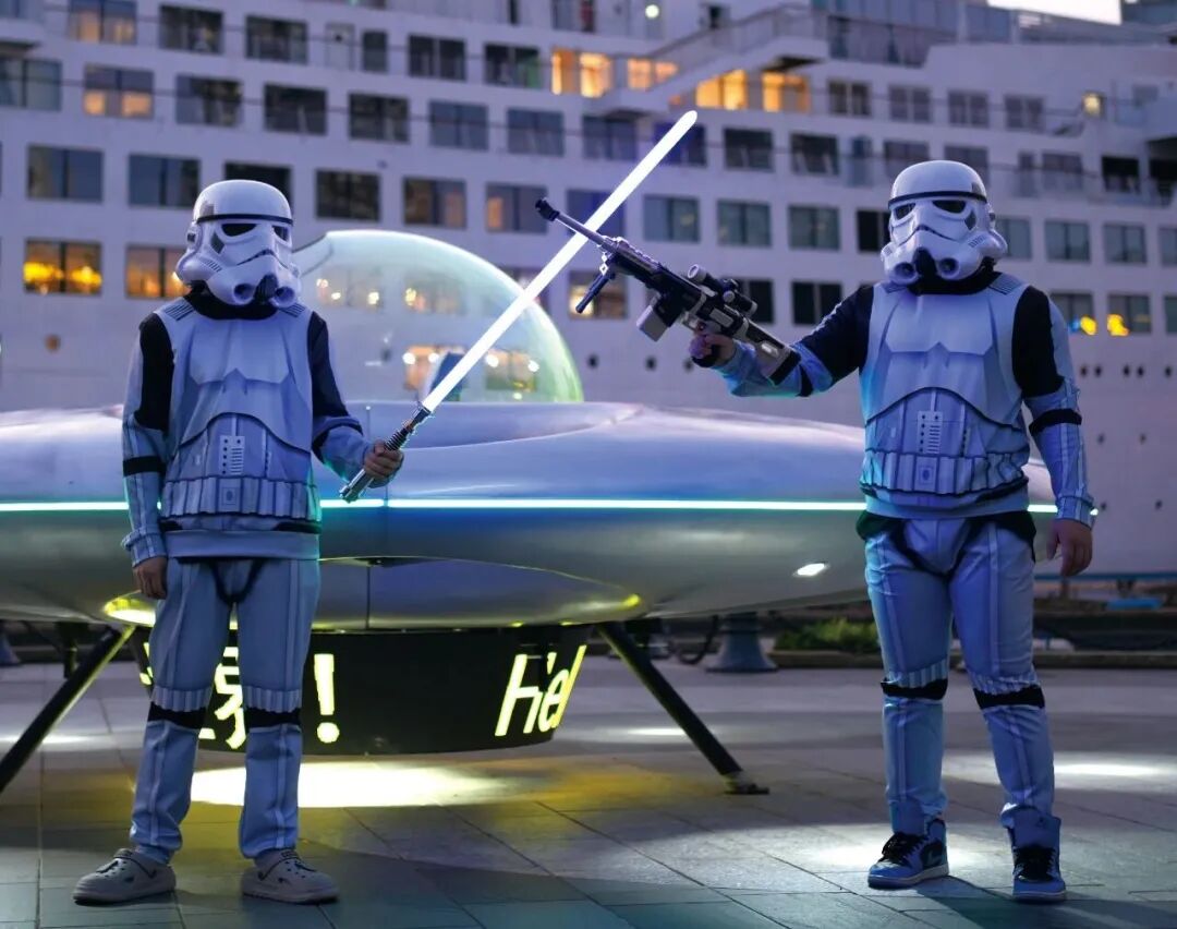 活动现场,特邀神秘而威武的“星际战士”亲临迎宾。他们身着酷炫的未来战甲,以充满科技感的独特方式引导每一位嘉宾签到入场,瞬间将现场的科技氛围与趣味性拉满,让你仿佛穿越时空,踏入了一个真实的星际世界。