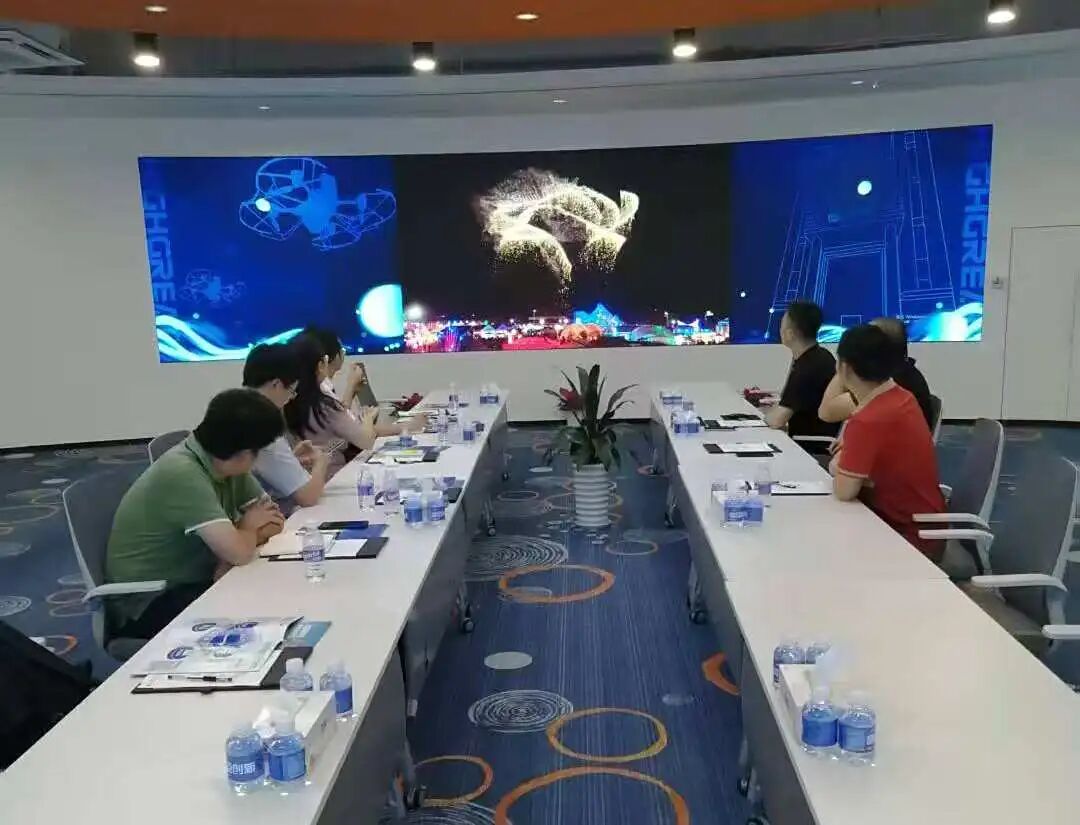 调研组实地考察了企业展厅与生产线,重点了解第三代编队表演无人机、水下装备、低空及AI智能教育硬件、智能制造体系等最新发展成果。高巨创新对低空经济领域的技术积累、标准化参与情况及参与国内标准制定等重点工作进行了汇报。
