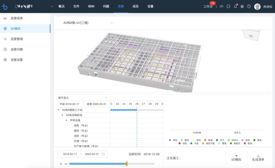 例如:在项目施工阶段,用户能够快速定位分期和分栋等相关信息,完成工程进度和工程成本的快速导入和绑定。项目参与在施工管理和协同的过程中,通过时间模拟项目进度和成本相关信息,合理安排项目资金使用;同时,用户可以在模型中快速定位具体位置,并获取实际进度和计划进度的差异,并直接在可视化环境中,完成施工任务安排。在这样的环境中,一方面能够直观了解工程项目的进度/质量/安全,另一方面能够便捷的完成相关阶段性工作的模拟和仿真。