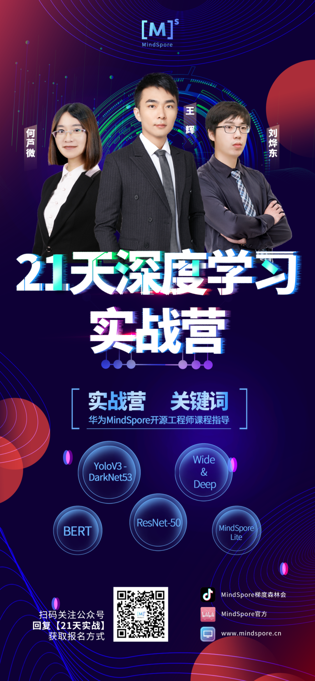 关注MindSpore公众号回复「21天实战」即可获取报名方式!或者小助手微信:mindspore0328,备注21,即可报名。