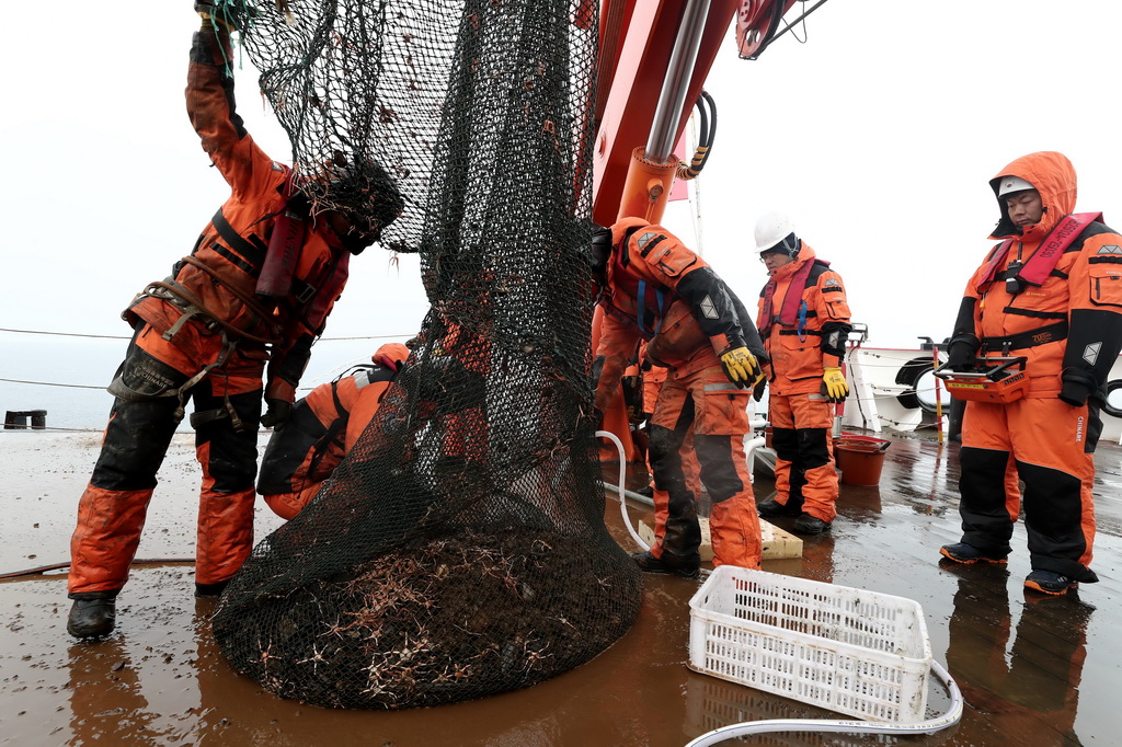 科考队员在回收底拖网。新华社记者 刘诗平 摄 5000多个样品揭示北极底栖生物多样性 生活在海底表面或泥沙中的底栖生物,是鱼类、海洋哺乳动物和海鸟的重要“口粮”。同时,它们吞食上层海水沉降下来的有机物,再把营养“释放”回海水,等于给大海“