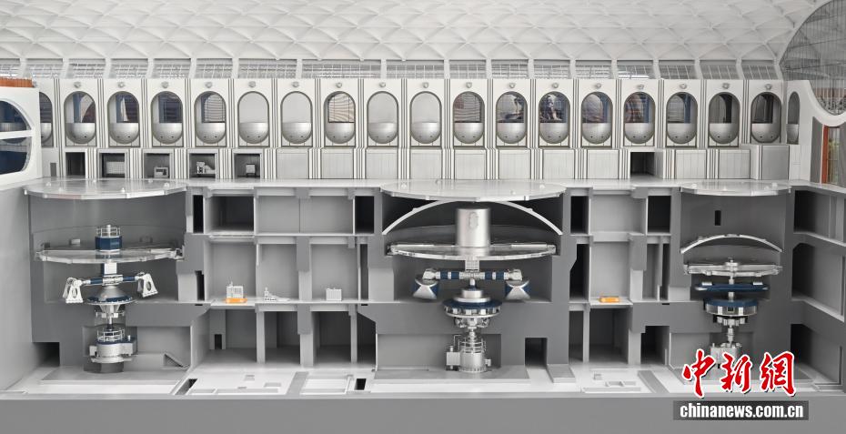 中新社记者 王刚 摄 9月29日,超重力离心模拟与实验装置内部构造模型展示中。当日,由浙江大学牵头建设的超重力离心模拟与实验装置(CHIEF)国家重大科技基础设施核心设备启动会在浙江杭州举行。据了解,该装置建设有重载机(CHIEF1900)