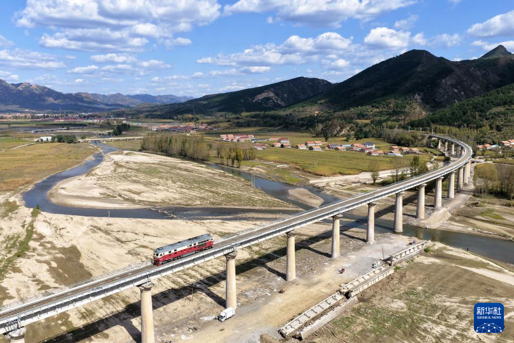 9月28日,列车驶过京通铁路河北隆化段(无人机照片)。 9月28日,由中铁二十二局集团承建的京通铁路(北京-通辽)电气化改造北京昌平至河北朝阳地区间(沈阳局管段)换梁工程顺利完成。该工程对既有线的7座桥梁进行拆除更换,是京通铁路最大规模的换