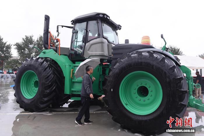 9月23日,山东省招远市,动力输出超600马力的混合动力拖拉机亮相2025年中国农民丰收节全国主场活动。该活动现场举办现代农机装备展,展出大量新型农机装备。中新社记者 王娇妮 摄