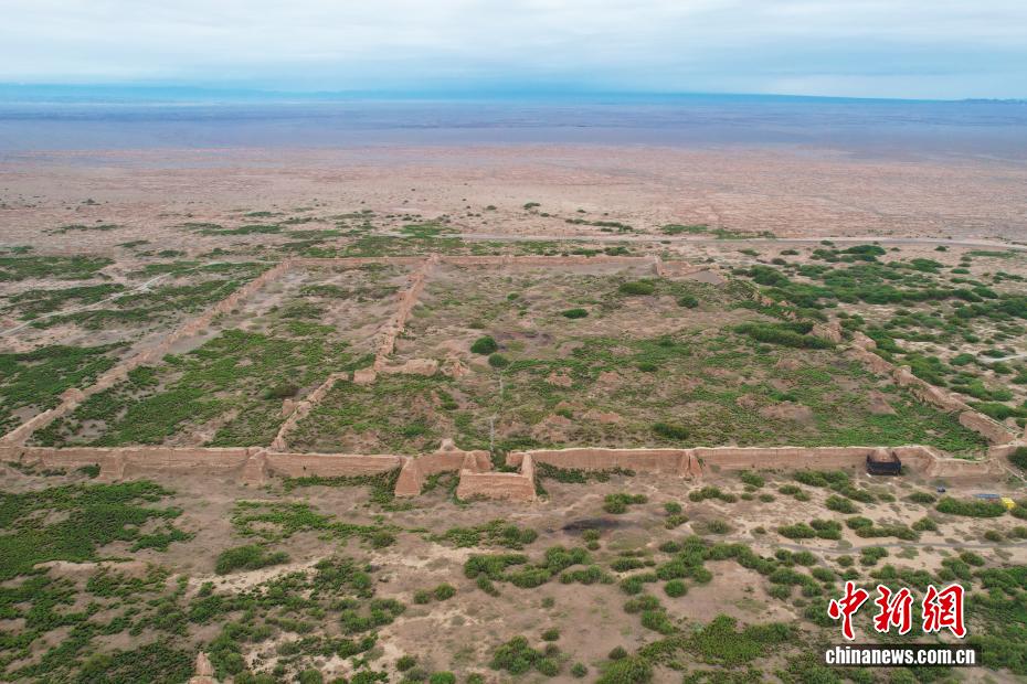 中新社记者 李亚龙 摄 8月7日,航拍位于甘肃省酒泉市瓜州县的锁阳城遗址。近期,锁阳城遗址迎保护修缮,目前项目施工单位敦煌研究院文保中心已完成西北瓮城、北墙一段等3个单位工程量,此次工程主要针对遗址的裂隙发育、根部掏蚀坍塌、冲沟发育、表面风