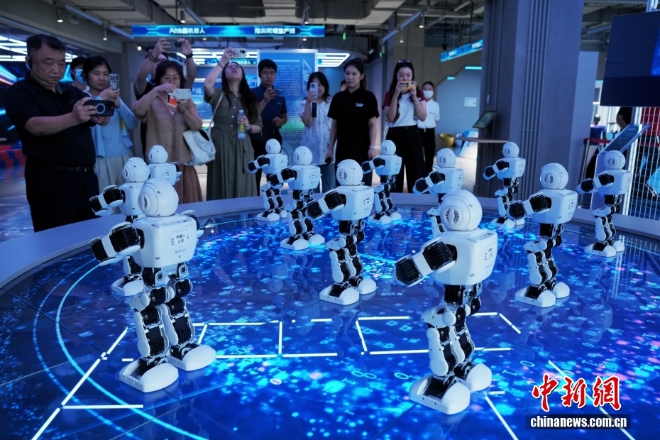 中新社记者 张祥毅 摄 8月4日,在位于北京亦庄的全球首家具身智能机器人4S店Robot Mall,机器人舞蹈表演吸引参观者。据了解,该机器人4S店提供机器人展示、体验、销售、售后等服务,进一步完善机器人产业链发展。在2025世界机器人大会