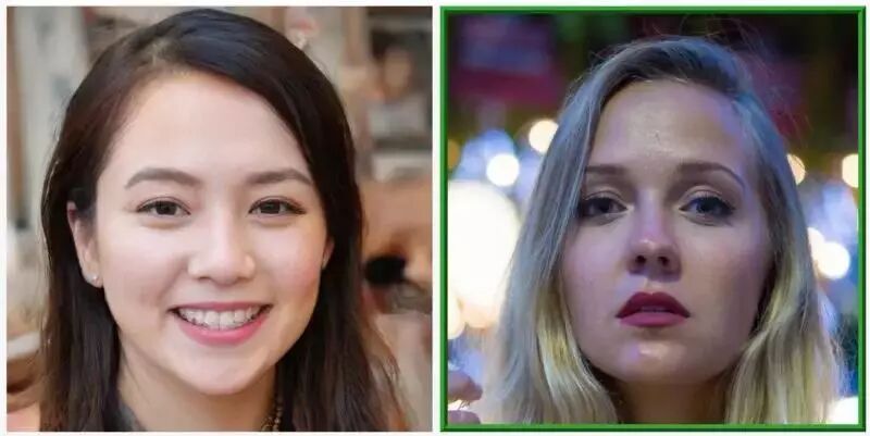 如果你觉得这道题太简单,你也可以猜猜看本文封面图的两个漂亮妹子哪个是真实的?哪个是AI生成的?